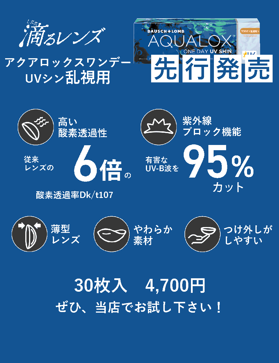 ボシュロムから新登場!アクアロックス ワンデーUV シン 乱視用